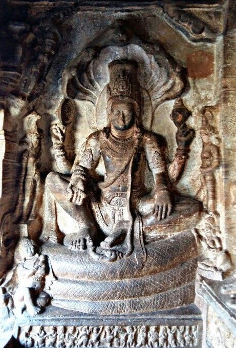 Dans les Purana, il est dit que la terre entière repose sur la tête du serpent Shesha. Ainsi le Seigneur Vishnou repose sur un serpent lové dont les anneaux lui servent de lit et le capuchon de sa tête le protège d'un dais surplombé d'un baldaquin. Le sens de cette image est que la conscience (Vishnou) repose sur le serpent qui est le substrat, le Soi suprême (Parabrahman).