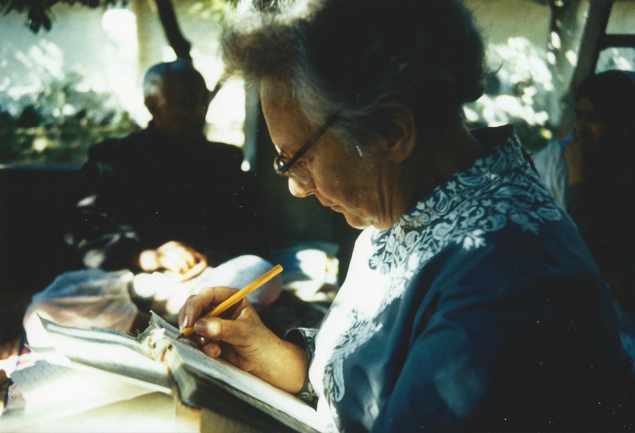 « Néanmoins , on peut déjà essayer de se recueillir, de demeurer paisible, de plonger constamment dans le guru, de penser à lui … alerte, vigilant, intense, à tout instant comme la femme mariée qui a un amant et ne cesse de penser à lui en dépit de toutes ses occupations, ou comme une mère qui berce d'une main son enfant et de l'autre fait un geste continuel : un moment d'inattention et elle aurait la main écrasée par un pilon … ou encore la femme qui porte un vase plein d'eau sur la tête et reste si attentive en dépit des pierres du chemin qu'aucune goutte d'eau n'est versée … Tels sont les exemples de l'Inde que le guru nous rappelle. » (extrait de lettre)